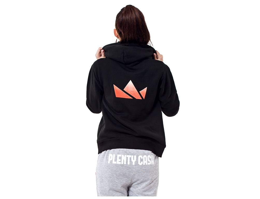 Dámská zapínací mikina se stylovou Plenty Cash korunou na zádech.