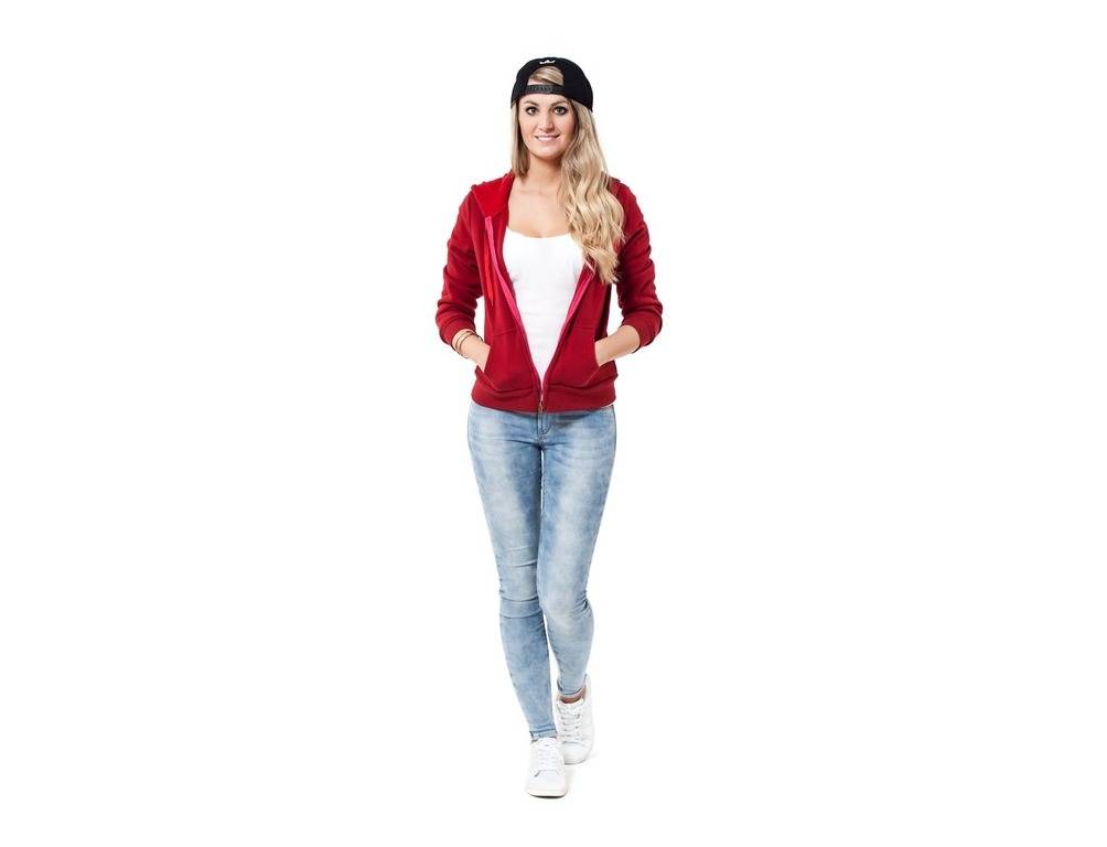 Dámská zapínací mikina s červenou třpytivou korunou na zádech. Příjemný kvalitní materiál.
